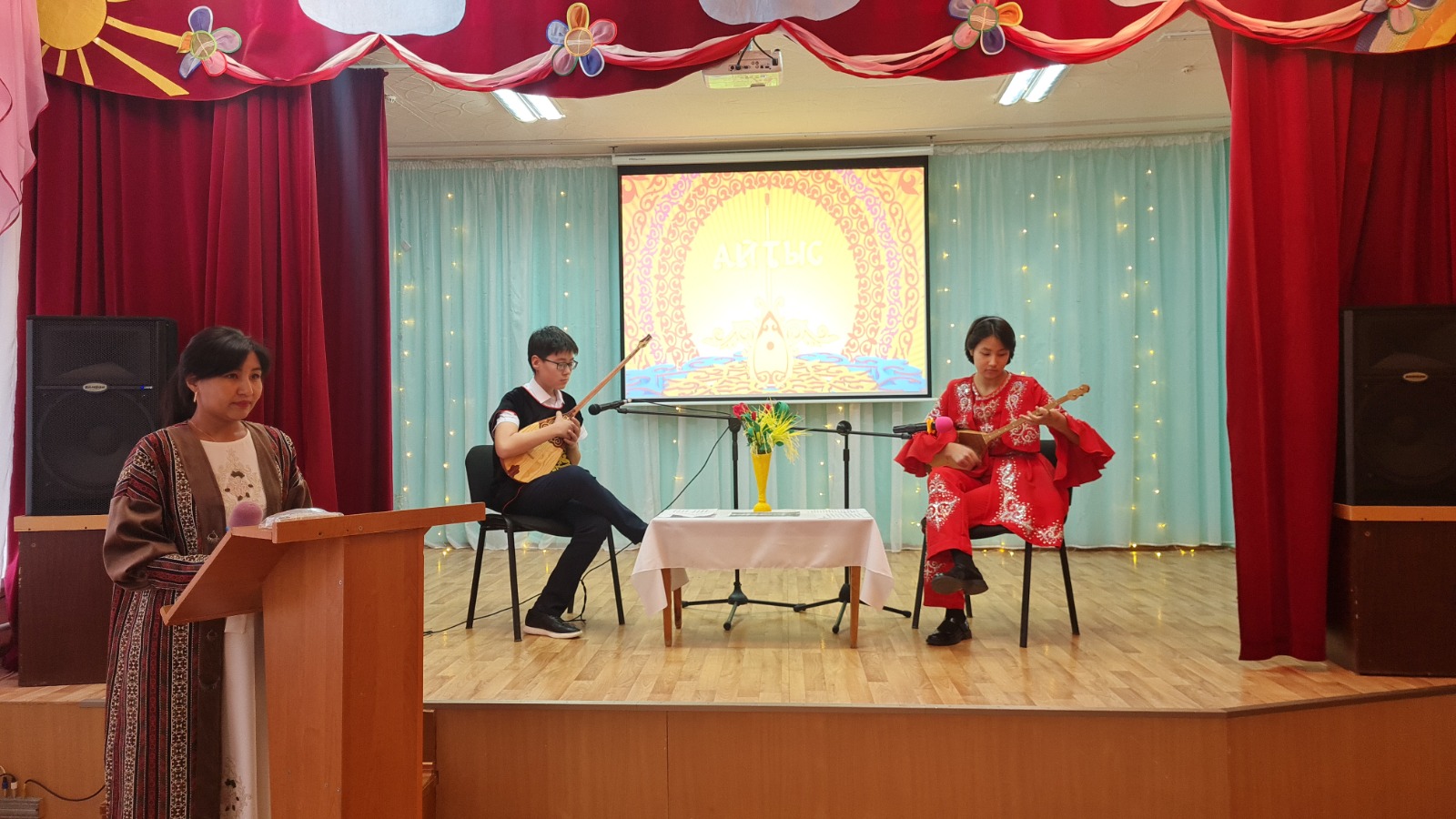 1. «Қыз бен бала арасындағы айтыс» - айтыстың алуан түрлілігі. Бұл айтысқа Базаров Абылайхан мен Аишева Аяна қатысты.