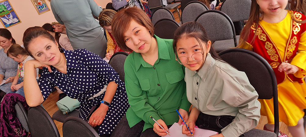 Оған «Табиғат және қиял» студиясының 11 командасы - Чистякова Мария Владимировна және Виктория, «Дарын» студиясынан Айтчанова Динара Амангалиевна және Сабина, «Саздан мүсіндеу» студиясының 2 командасы - Мартыненко Анастасия Владимировна және Валерия, Райымбекова Берен Камешевна және қызы Нурсулу, «Гармония» студиясынан Кожамжарова Мадина Темирхановна және Радмира, «Арабеск» студиясынан Шуншалинова Екатерина Ильинична және Амина, «Ғажайып квиллинг» студиясынан Егорова Татьяна Васильевна және Анастасия, «Сиқырлы қиқым» студиясынан Бычковская Татьяна Наильевна және Александра, «Этюд» студиясынан Клюшина Наталья Федоровна және Светлана, «Сиқырлы шүйке» студиясынан Якупова Айгуль Булатовна және Тулекова Ислана, «Ана тілі» студиясынан Нурмагамбетова Айгуль Тулемисовна және Муслим Малика қатысты.