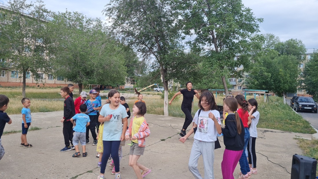 «Жазғы көңіл-күй» ойын бағдарламасымен жылжымалы аула алаңының жұмысы