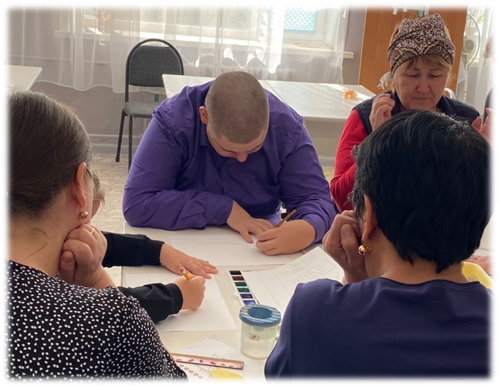 2022 жылғы 26 қазан күні Балалар шығармашылық үйінің базасында «Менің сүйікті қалам» ұжымдық сурет салу тақырыбы бойынша «Шығармашылықтан өмір суру» әлеуметтік жобасын іске асыру бойынша сабақ өткізілді. Педагог Голубева Т.И.. Сабаққа мүгедек балалар шақырылып, 3 бала қатысты.