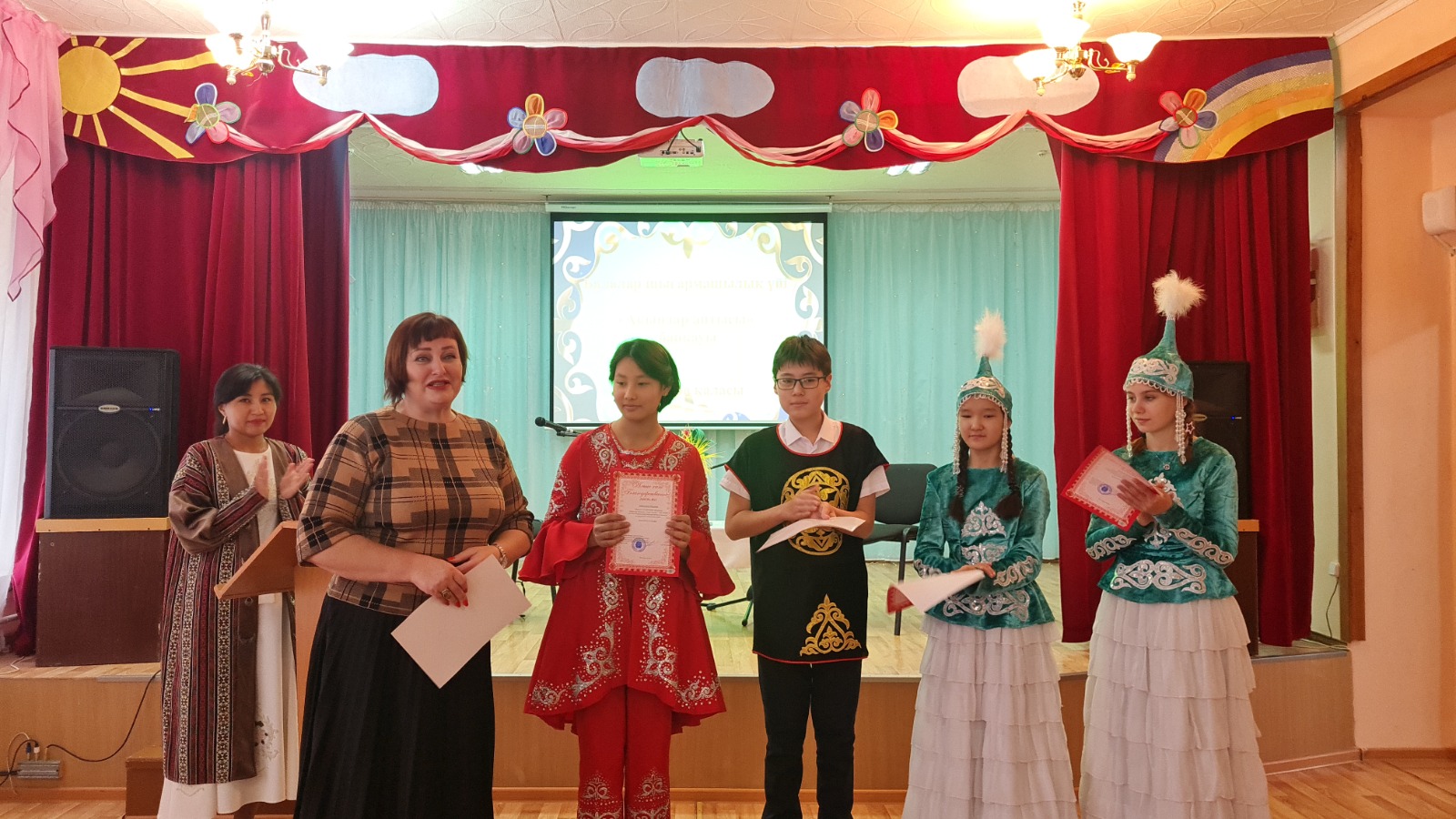 «Дарын» студиясының тәрбиешілері, жетекшісі Маликаджарова Дина Калиевна керемет іс-шара дайындады. «Гармония» вокалдық студиясының талантты тәрбиешісі Тымко Виоллета «Бірлігіміз жарасқан» әнін орындады. Балалар шығармашылық үйінің директоры Колядина Елена қатысқаны үшін алғыс айтып, Алғыс хаттарын табыстады.