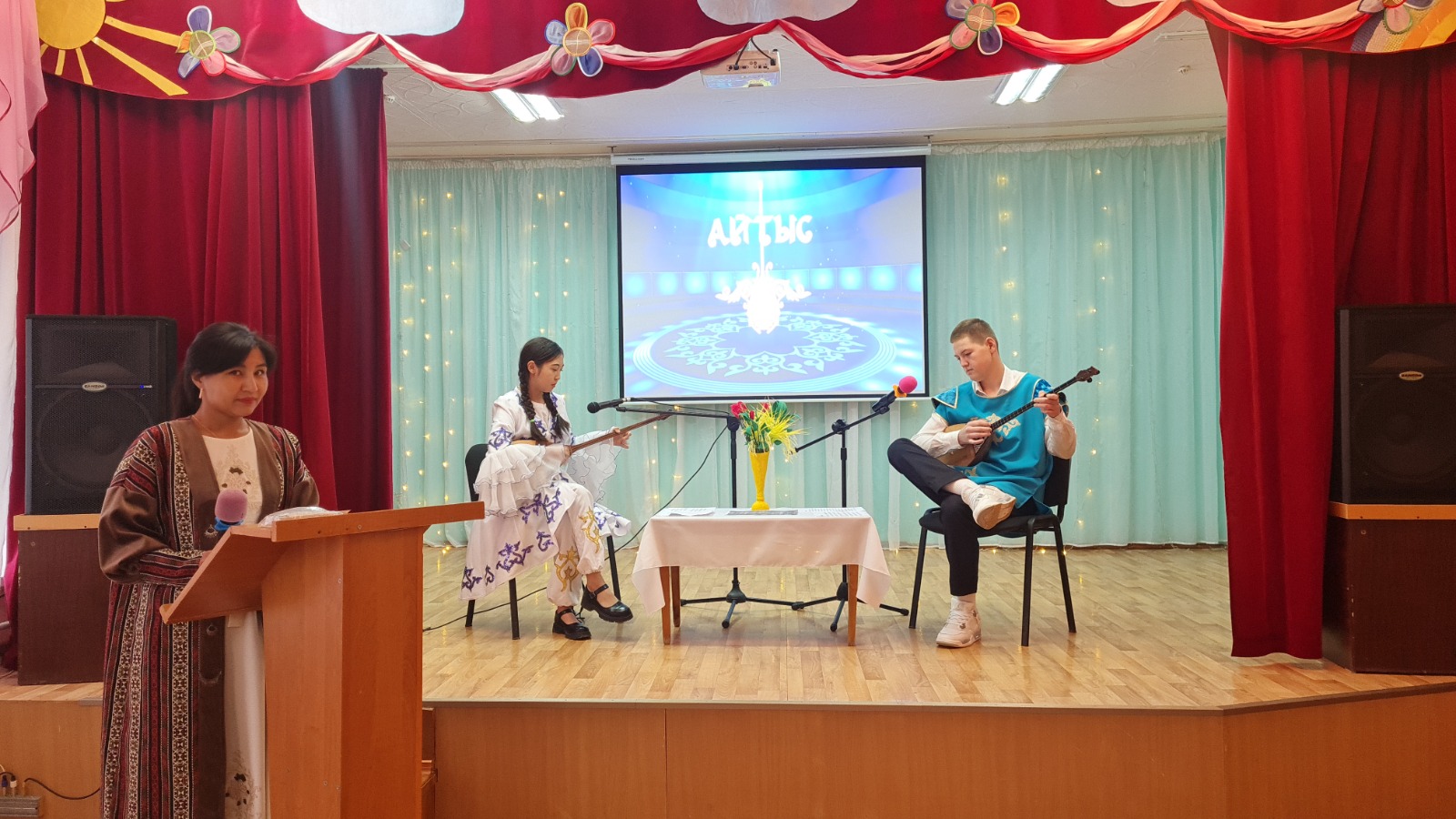 1. «Қыз бен бала арасындағы айтыс» - айтыстың алуан түрлілігі. Бұл айтысқа Базаров Абылайхан мен Аишева Аяна қатысты.